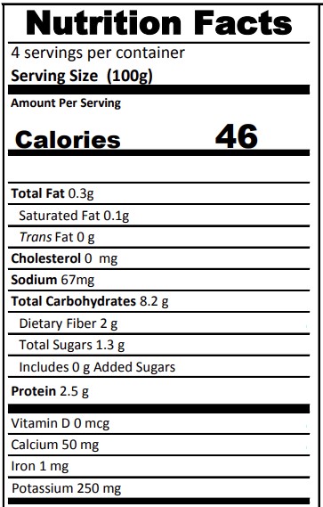 Prepared from fresh, clean, sound of edible part of which have been sorted, calibrated, peeled which sufficiently blanched to ensure adequate Stability of color and flavor, frozen and maintained at temperatures necessary for the preservation of the product.