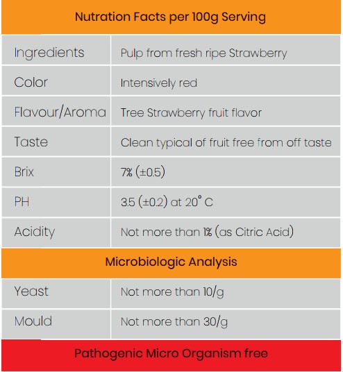 The fruit is processed in aseptic filling system. By means of scaled,mill, sift and concentration as required.